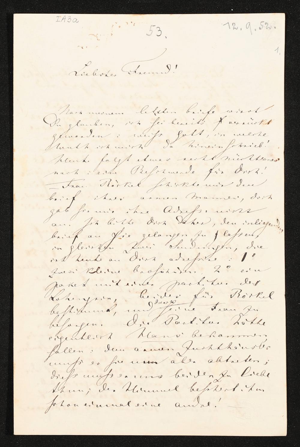 eigenhändiger Brief von Richard Wagner an Franz Liszt