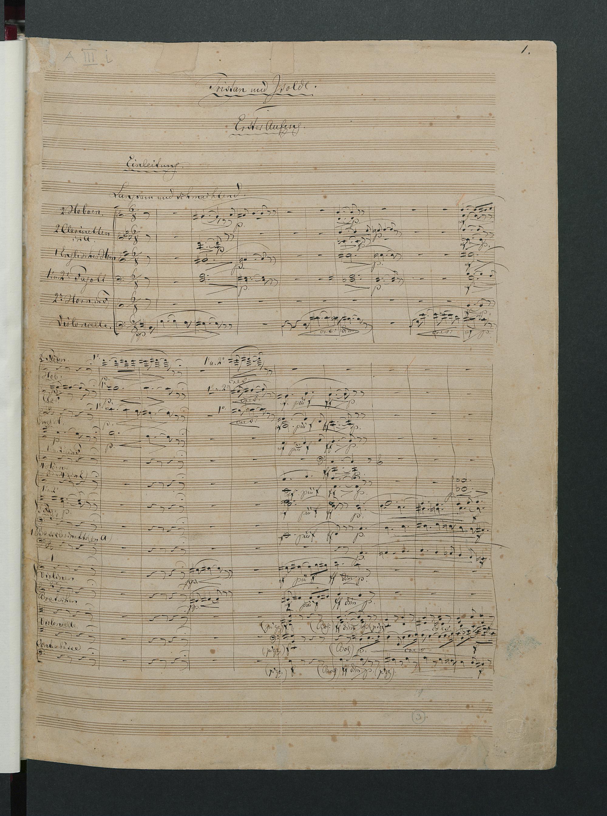 Tristan und Isolde, eigenhändige Partitur von Richard Wagner mit eigenhändigen Eintragungen des Verlagskorrektors Alfred Dörffel