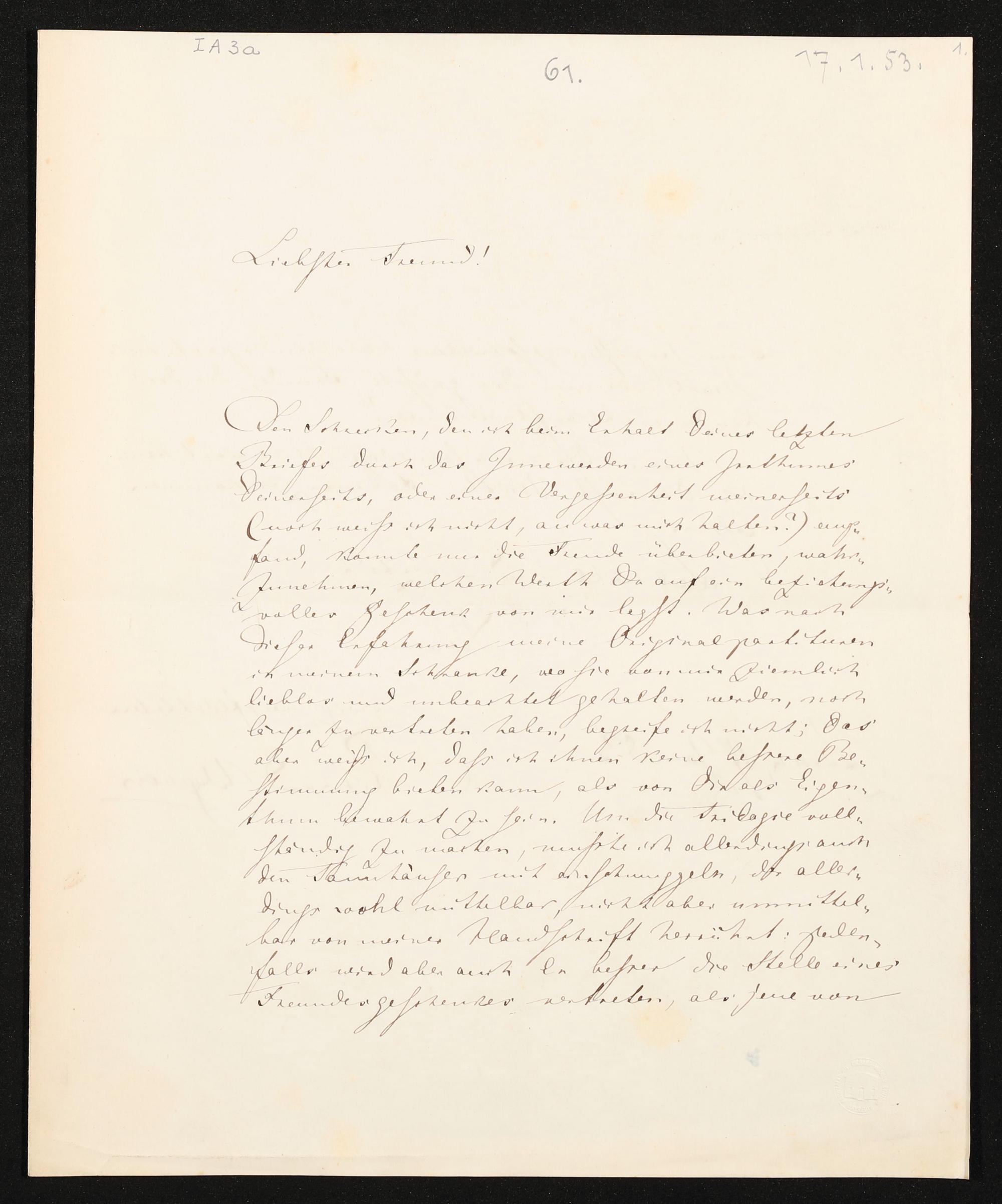 eigenhändiger Brief von Richard Wagner an Franz Liszt