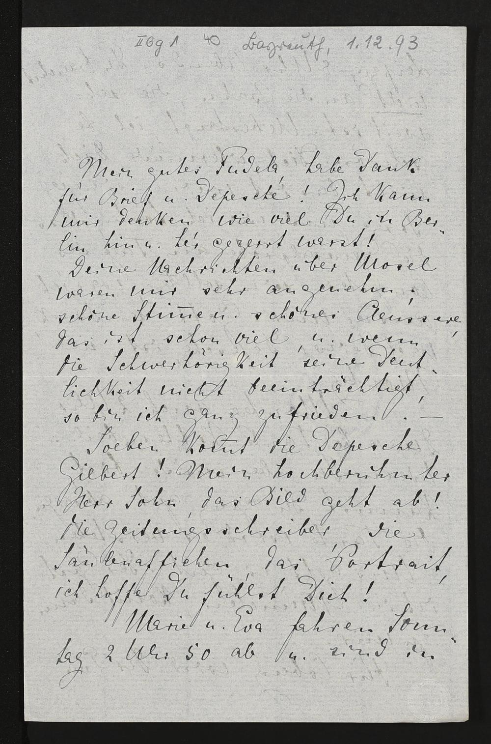 eigenhändiger Brief von Cosima Wagner an Siegfried Wagner