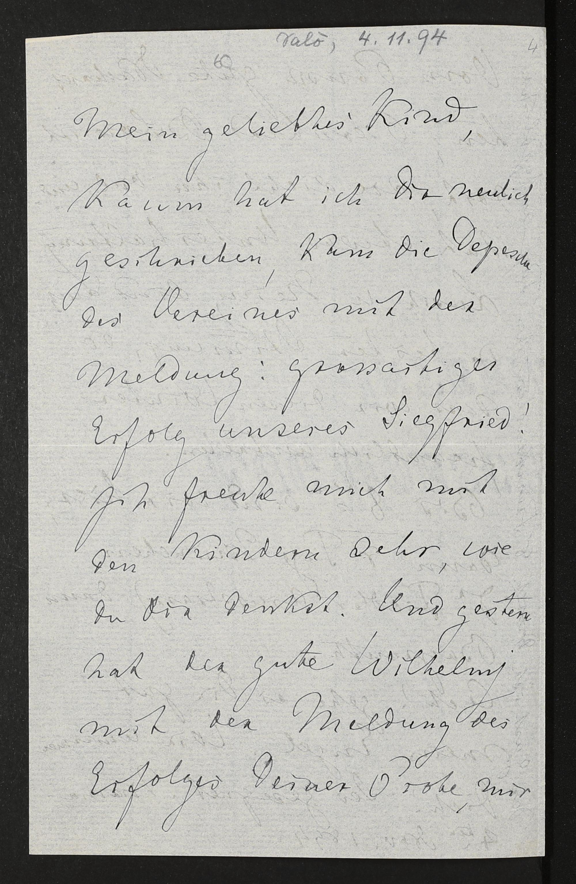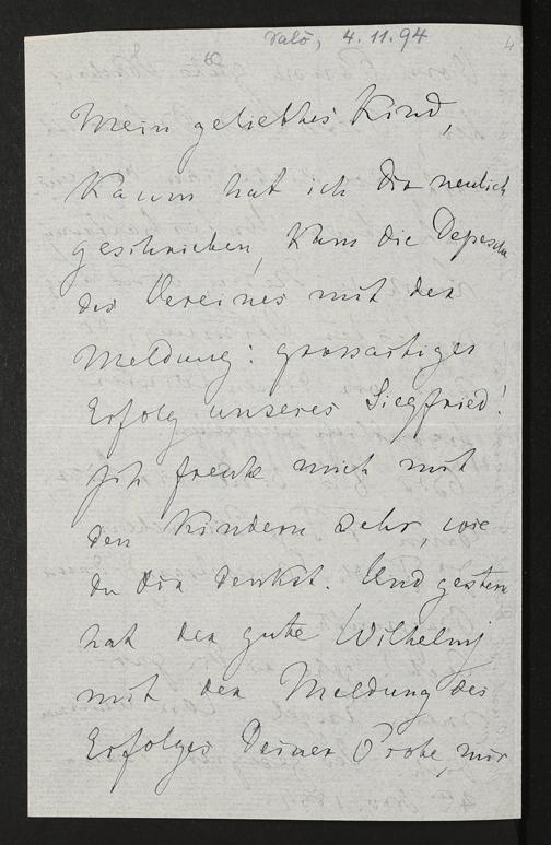 eigenhändiger Brief von Cosima Wagner an Siegfried Wagner