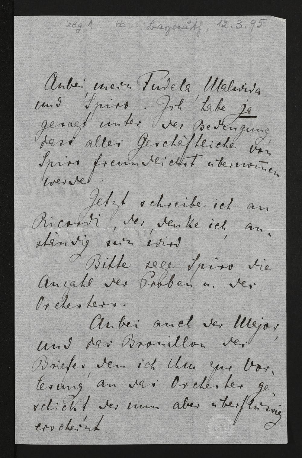 eigenhändiger Brief von Cosima Wagner an Siegfried Wagner