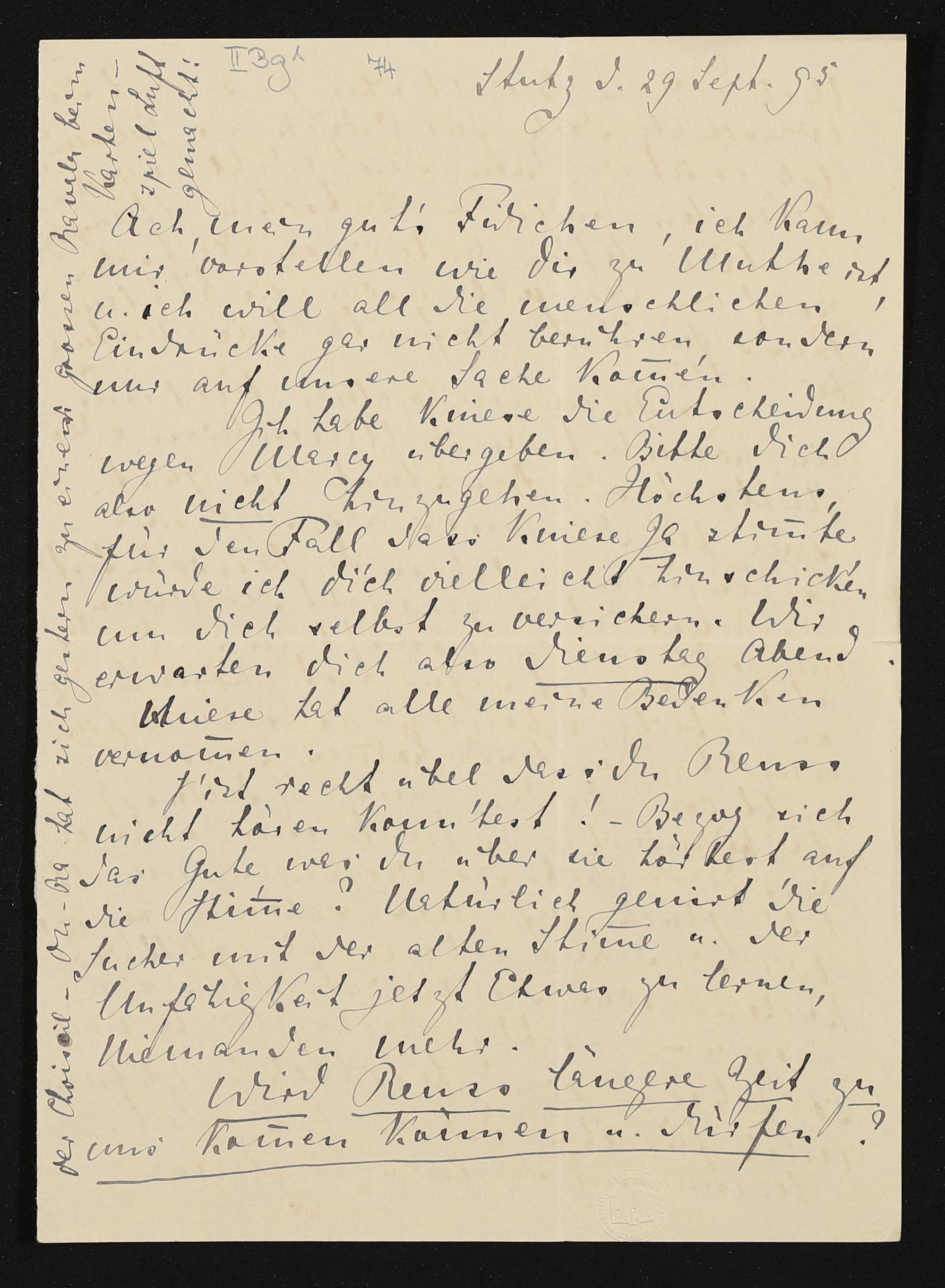 eigenhändiger Brief von Cosima Wagner an Siegfried Wagner