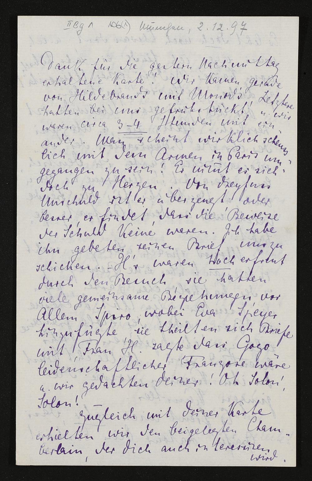 eigenhändiger Brief von Cosima Wagner an Siegfried Wagner