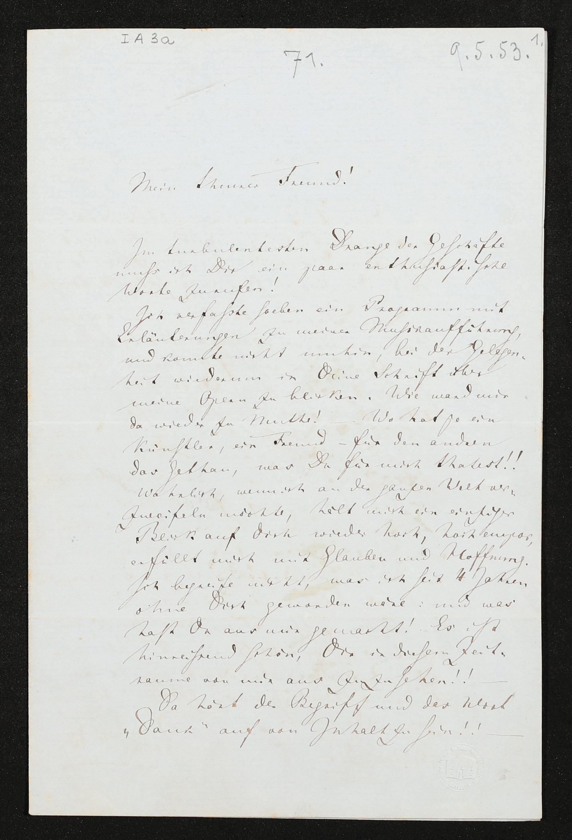 eigenhändiger Brief von Richard Wagner an Franz Liszt