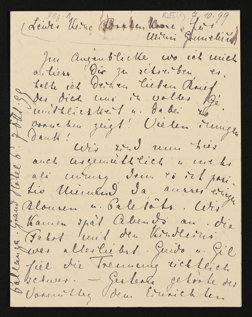 eigenhändiger Brief von Cosima Wagner an Siegfried Wagner
