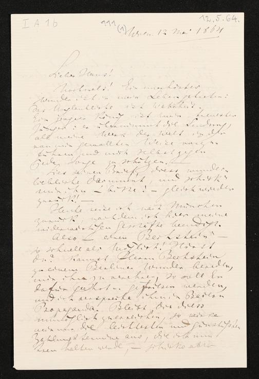 eigenhändiger Brief von Richard Wagner an Hans von Bülow