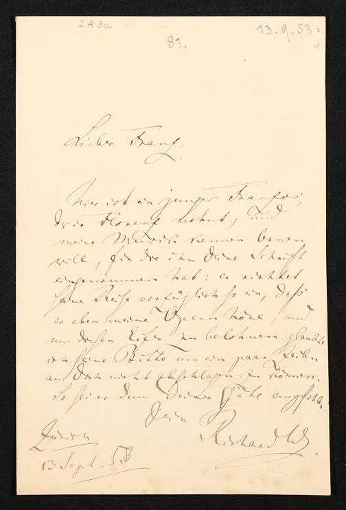 eigenhändiger Brief von Richard Wagner an Franz Liszt