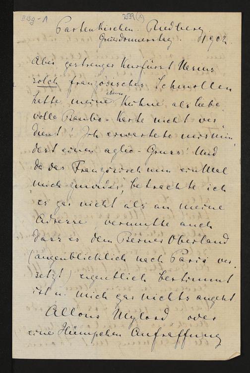 eigenhändiger Brief von Cosima Wagner an Siegfried Wagner
