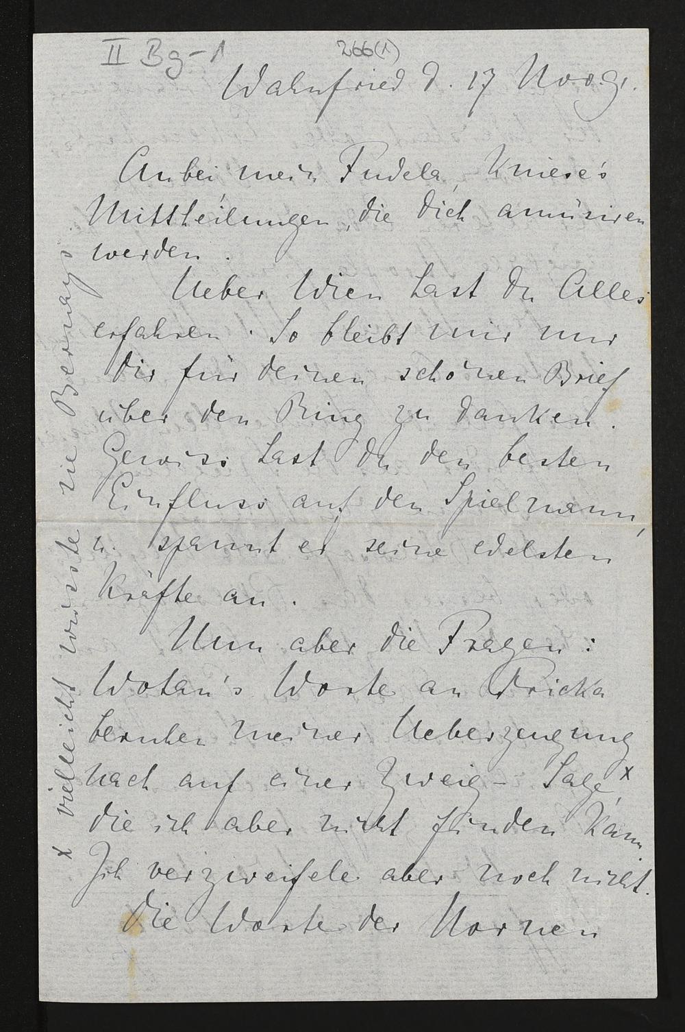 eigenhändiger Brief von Cosima Wagner an Siegfried Wagner
