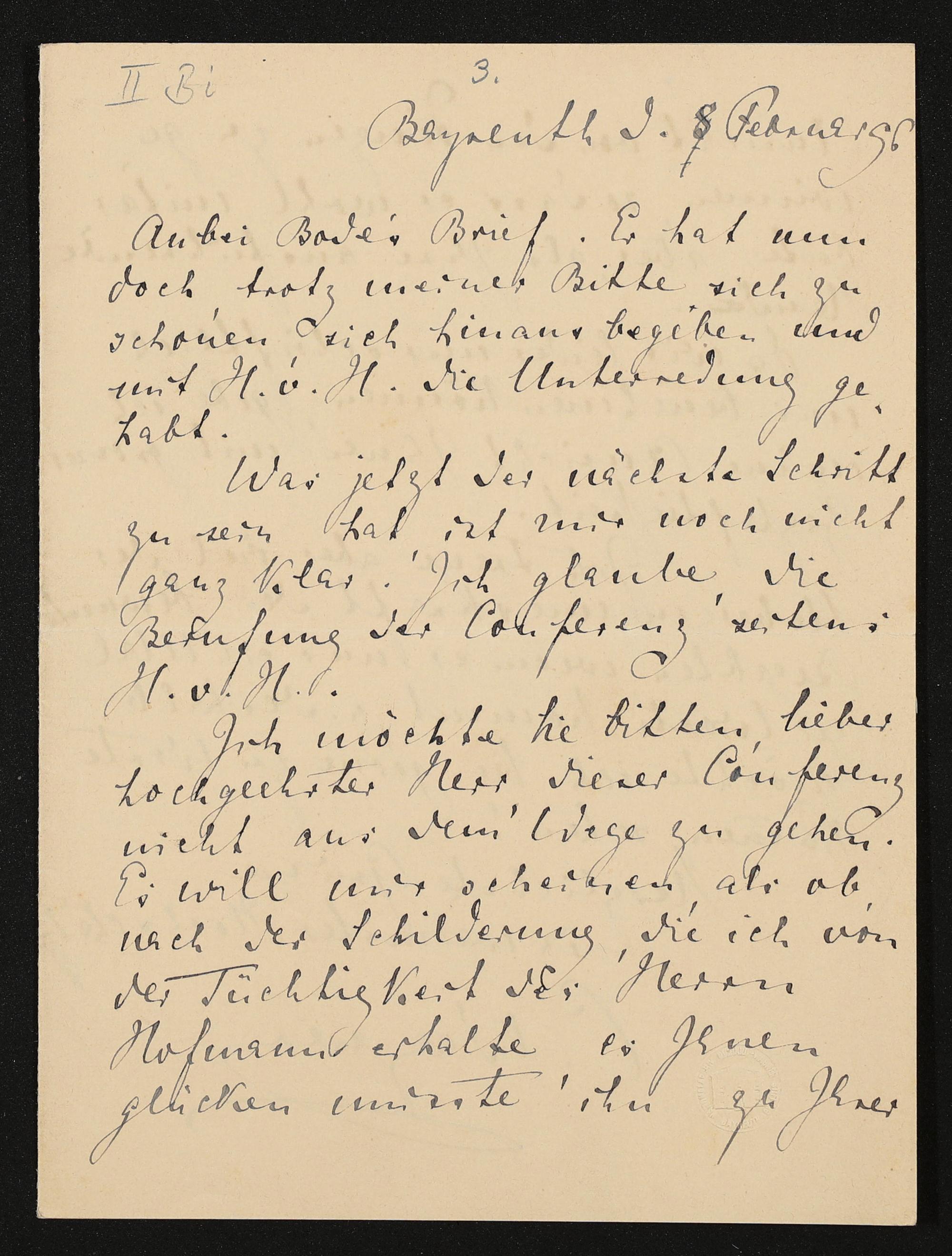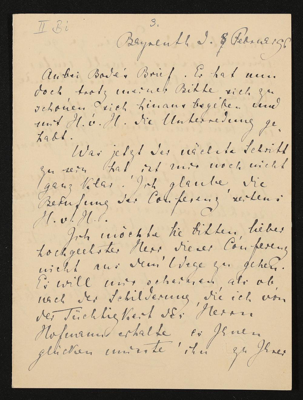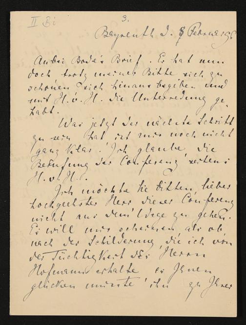 eigenhändiger Brief von Cosima Wagner an Adolf von Hildebrand