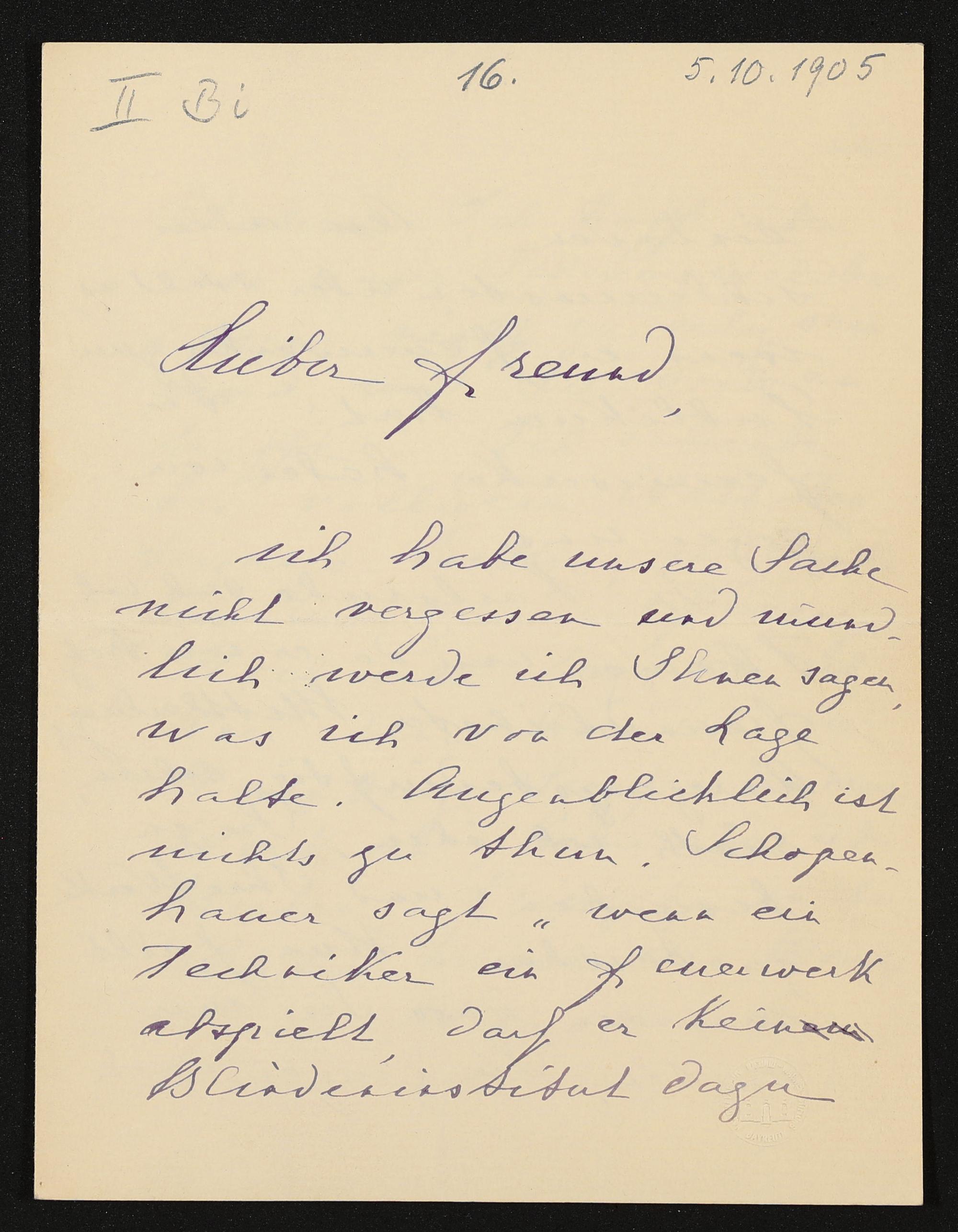 eigenhändiger Brief von Cosima Wagner an Adolf von Hildebrand