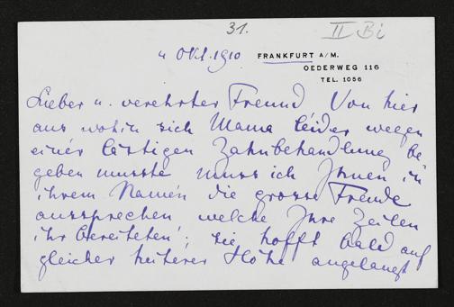 eigenhändige Briefkarte von Eva Wagner an Adolf von Hildebrand
