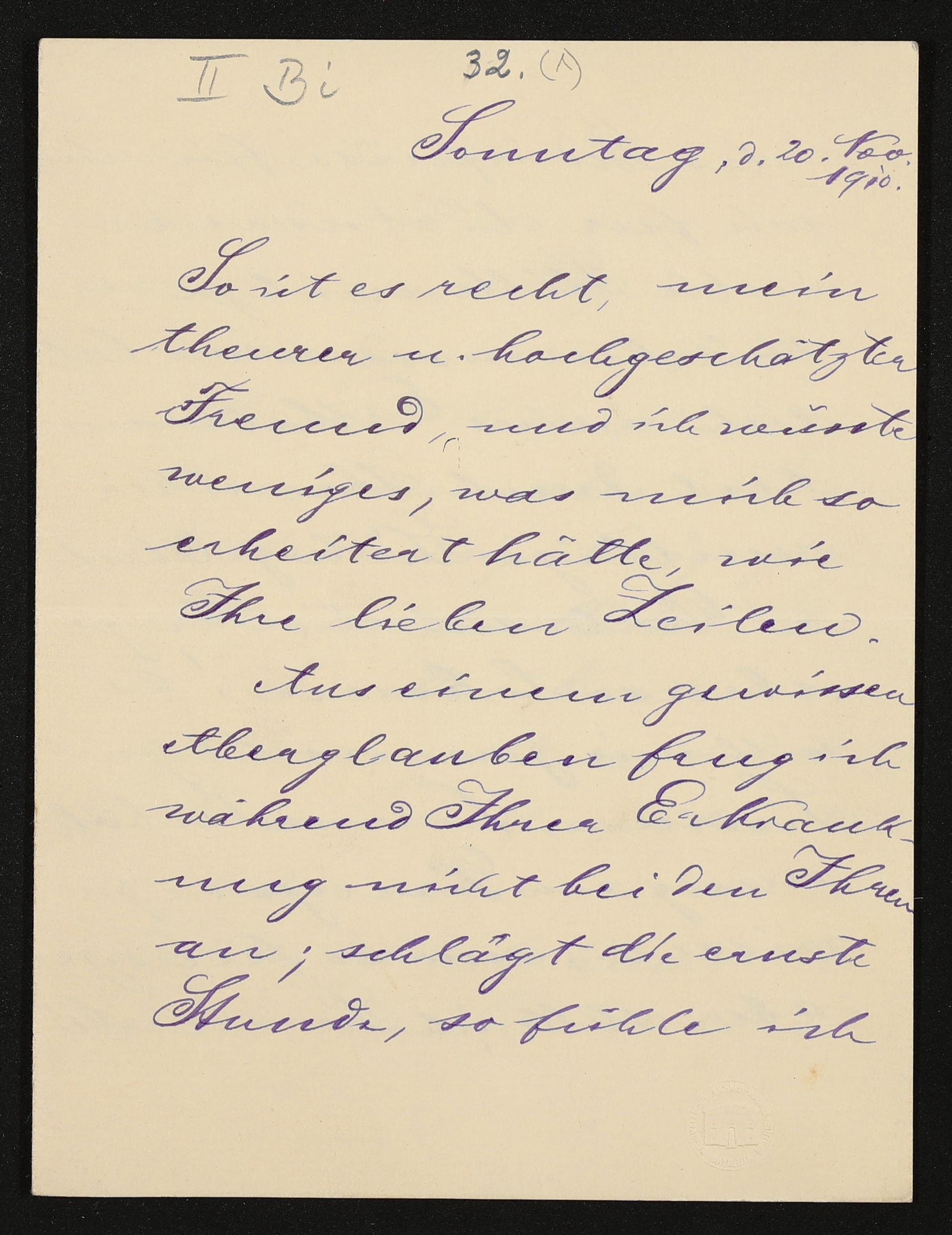 eigenhändiger Brief von Cosima Wagner an Adolf von Hildebrand