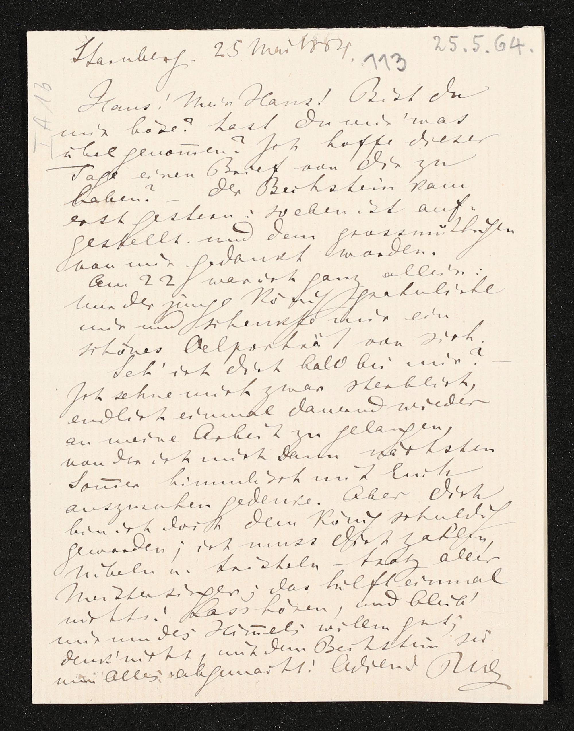 eigenhändiger Brief von Richard Wagner an Hans von Bülow