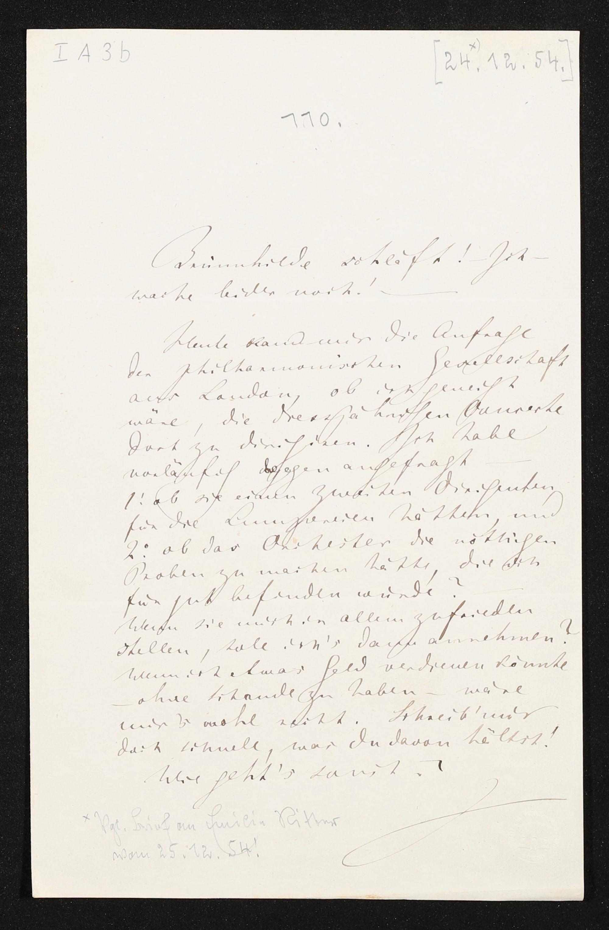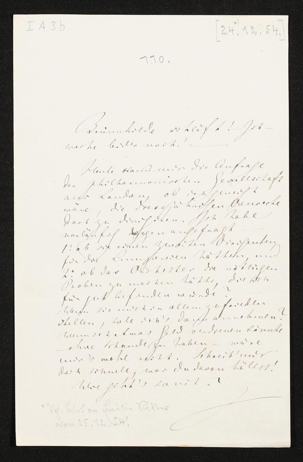 eigenhändiger Brief von Richard Wagner an Franz Liszt