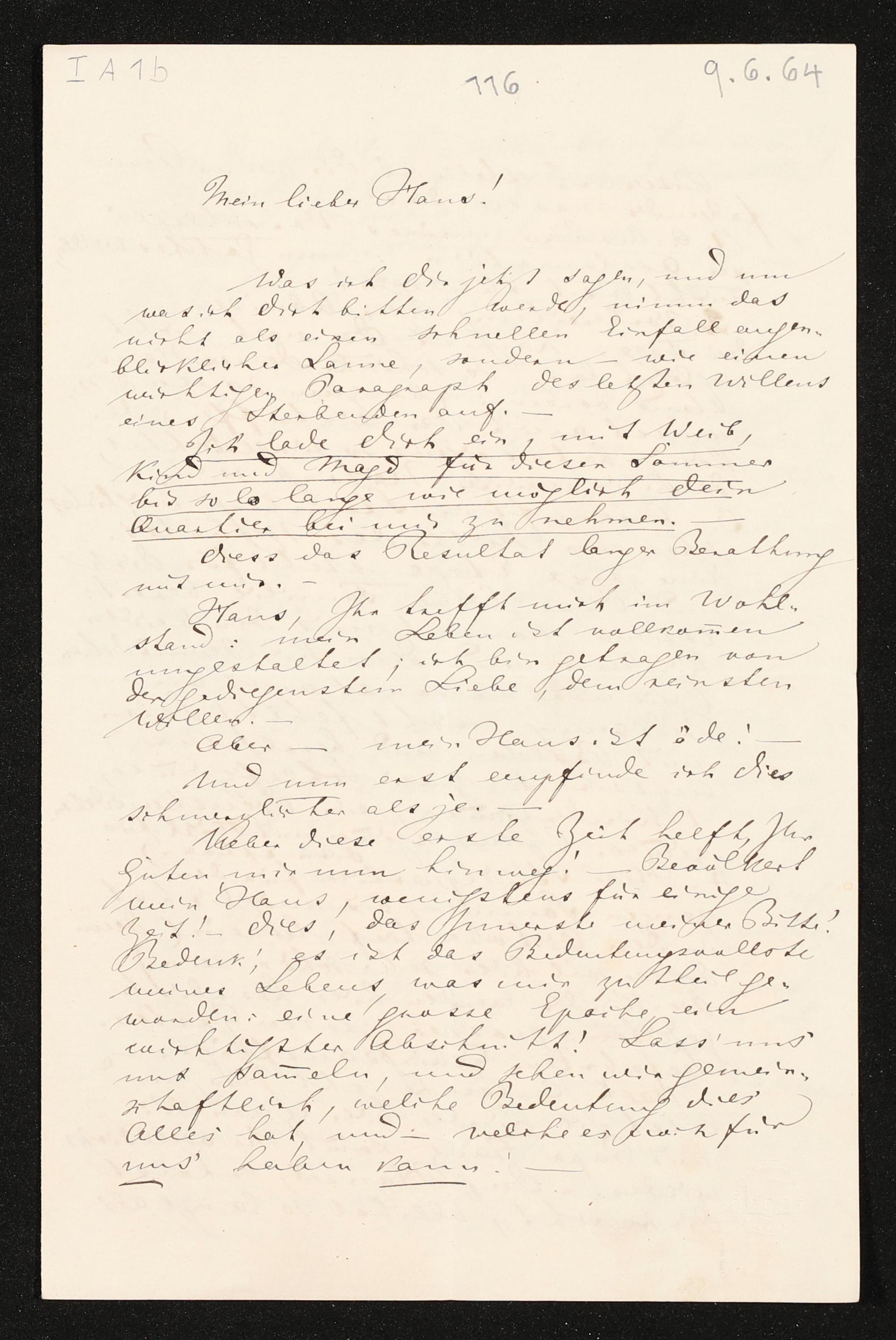 eigenhändiger Brief von Richard Wagner an Hans von Bülow