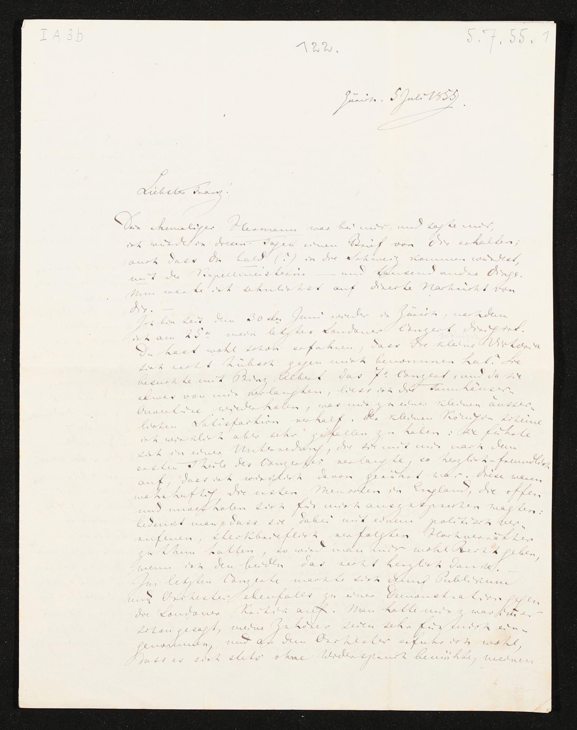 eigenhändiger Brief von Richard Wagner an Franz Liszt