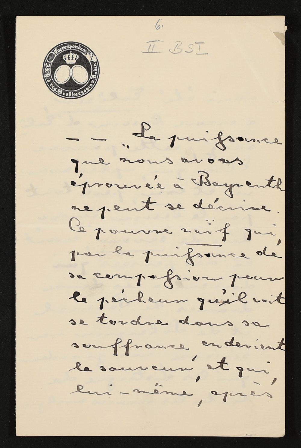 unvollständiger, eigenhändiger Brief von Cosima Wagner an einen unbekannten Empfänger