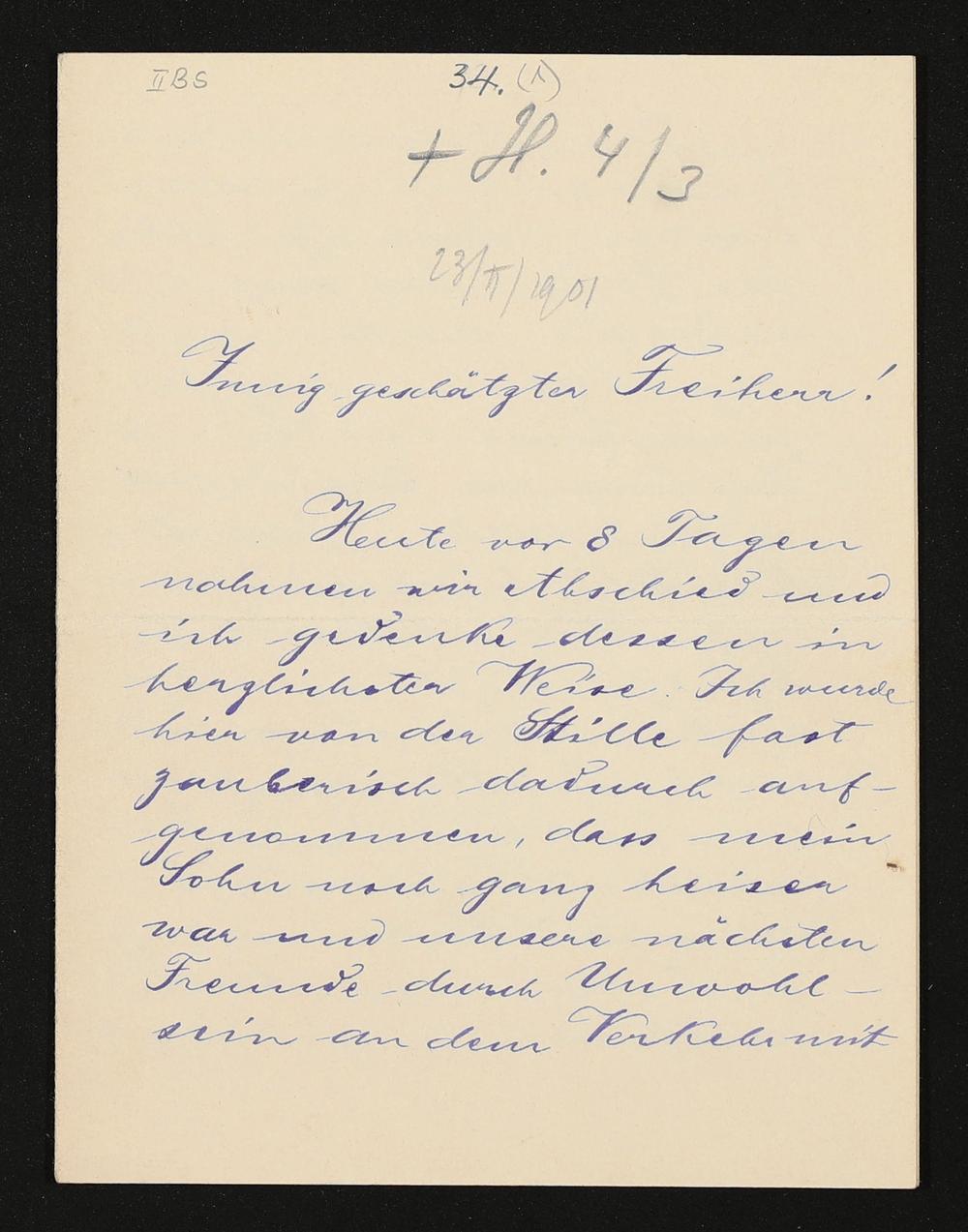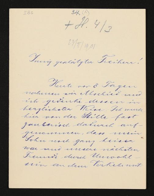 eigenhändiger Brief von Cosima Wagner an Botho von dem Knesebeck