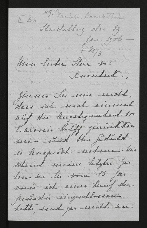 eigenhändiger Brief von Daniela Thode an Botho von dem Knesebeck
