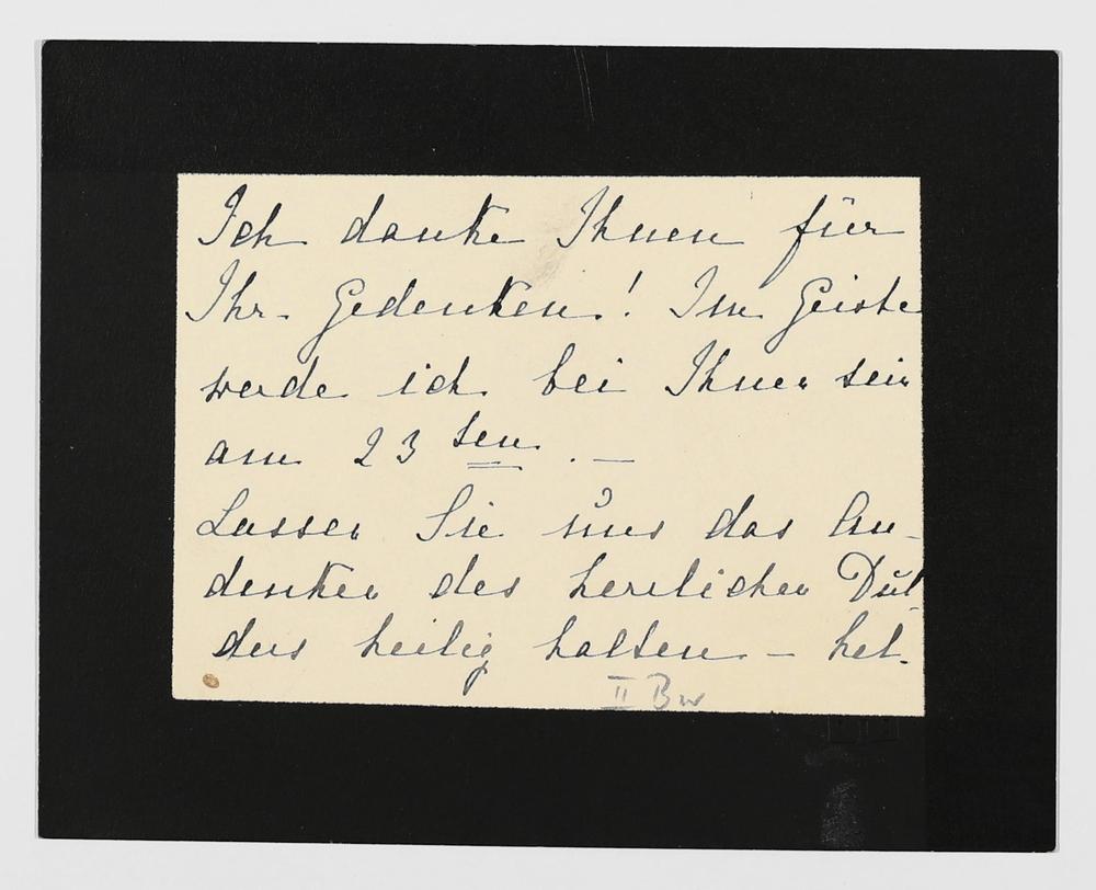 eigenhändige Briefkarte von Daniela Thode an Therese Stamm