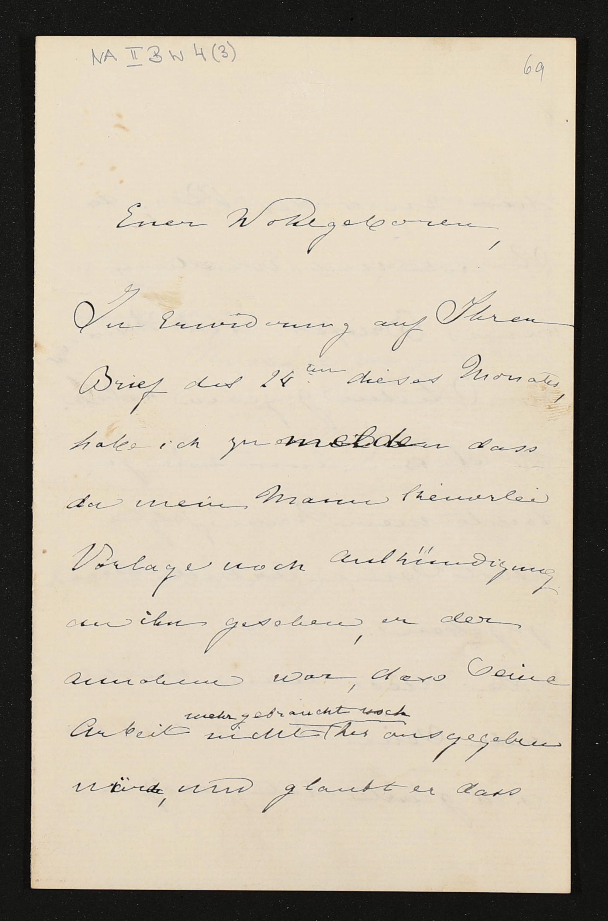 eigenhändiger Brief von Cosima Wagner an einen unbekannten Empfänger
