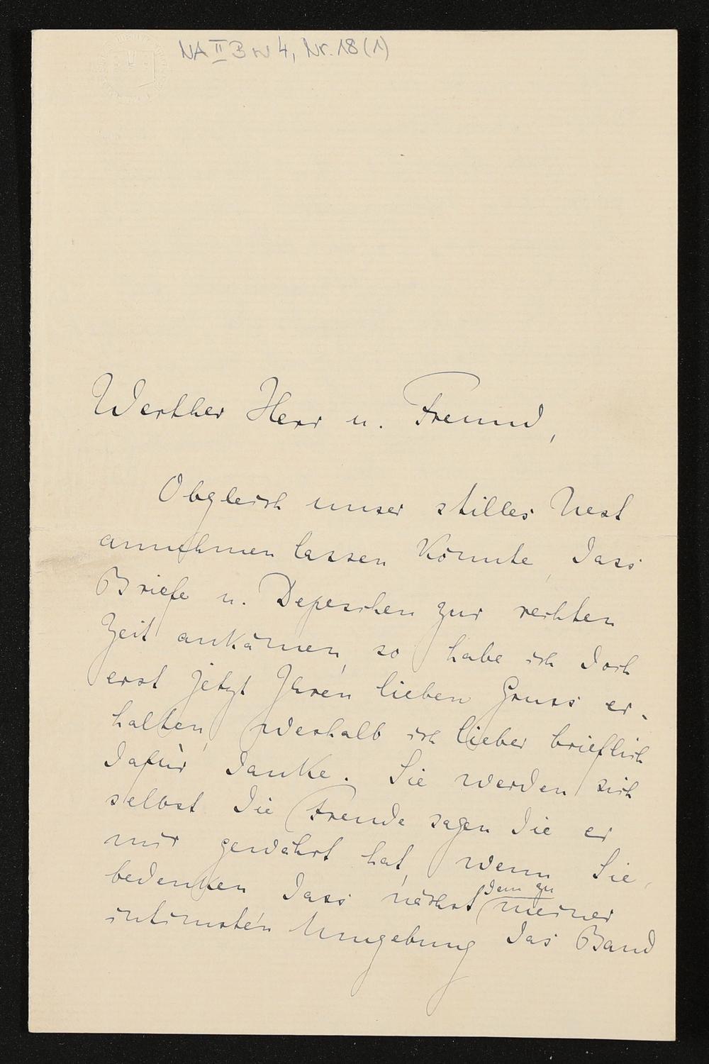 eigenhändiger Brief von Cosima Wagner an Heinrich Gudehus