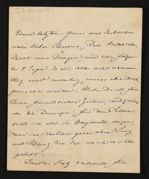 eigenhändiger Brief von Cosima Wagner mutmaßlich an Clemens Brockhaus