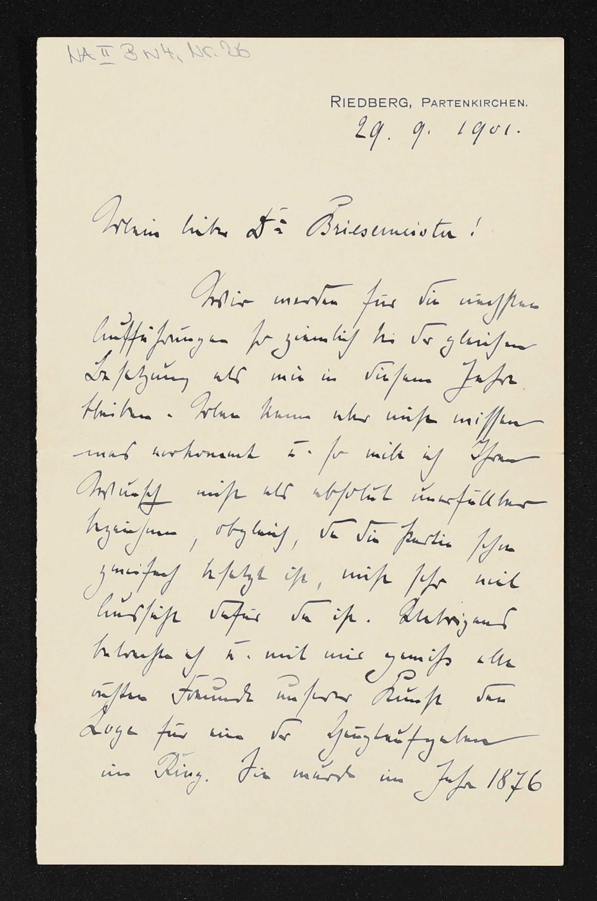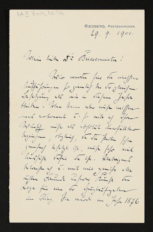 eigenhändiger Brief von Cosima Wagner an Otto Briesemeister