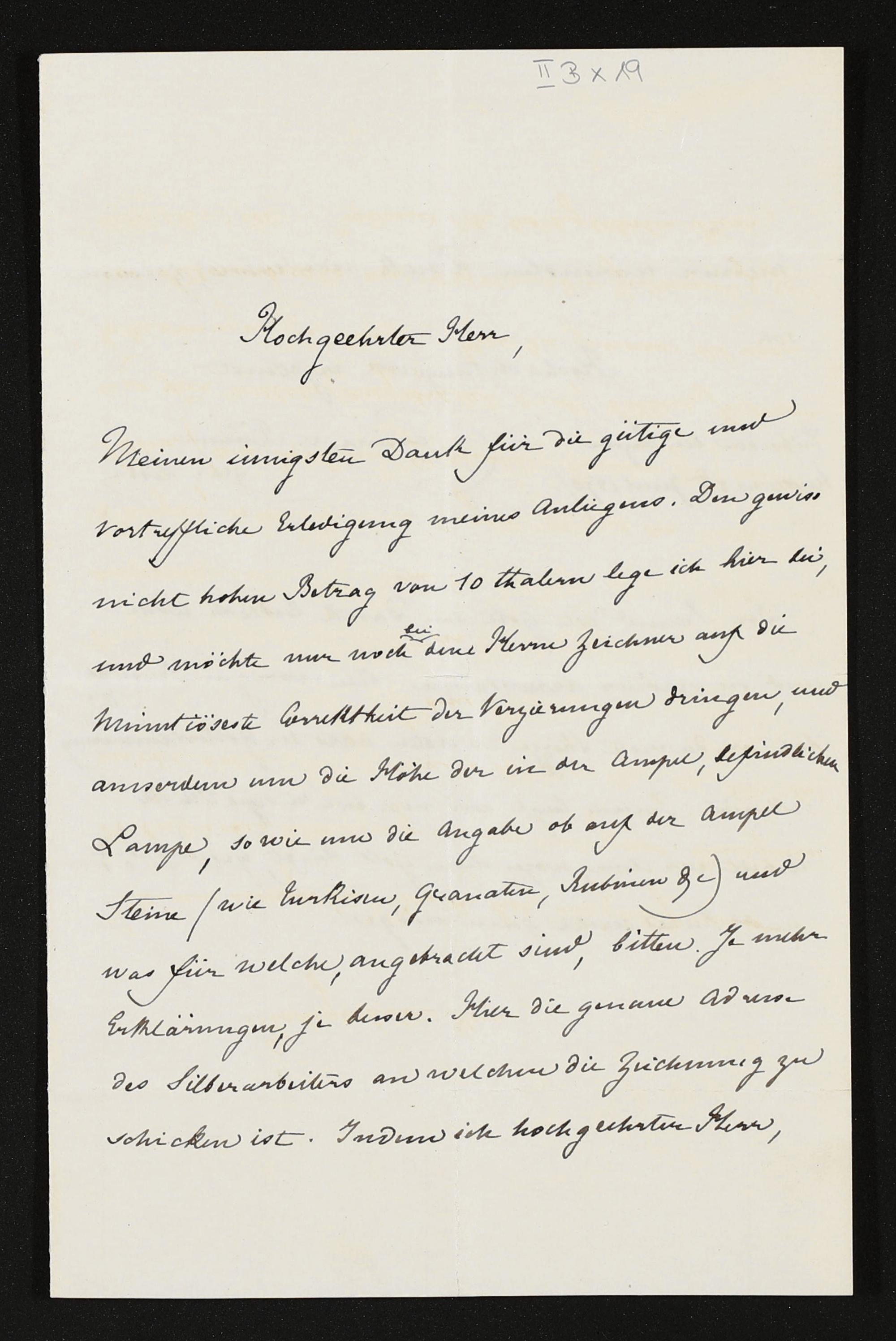 eigenhändiger Brief von Cosima Wagner an Anton Pusinelli