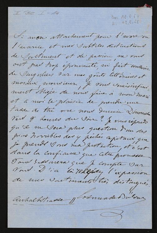 eigenhändiger Brief von Cosima Wagner an Ernst Dohm