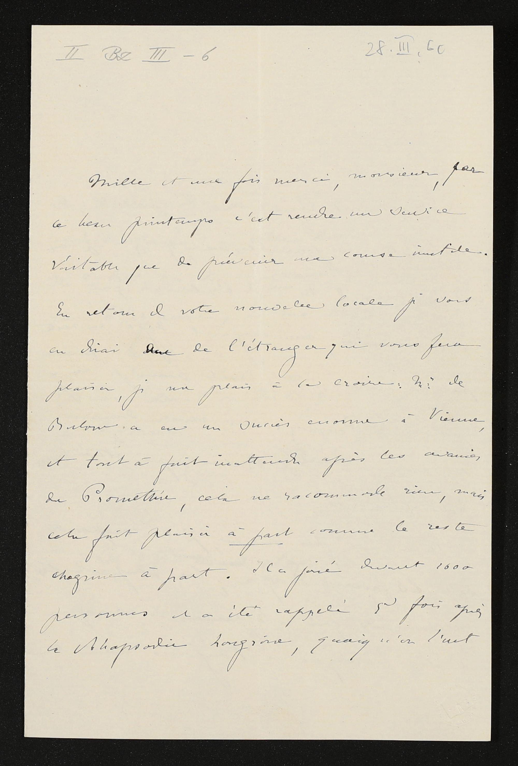 eigenhändiger Brief von Cosima Wagner an Ernst Dohm