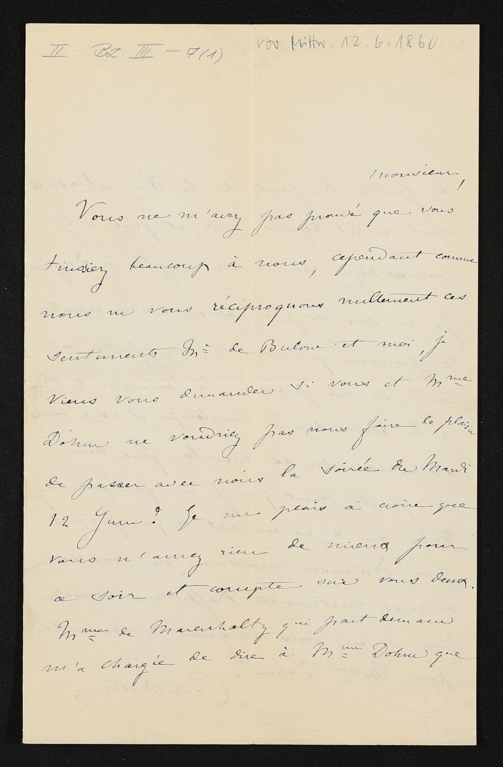 eigenhändiger Brief von Cosima Wagner an Ernst Dohm