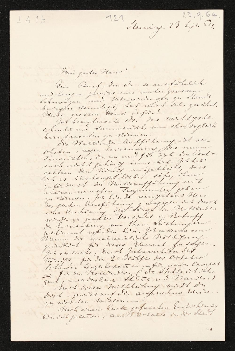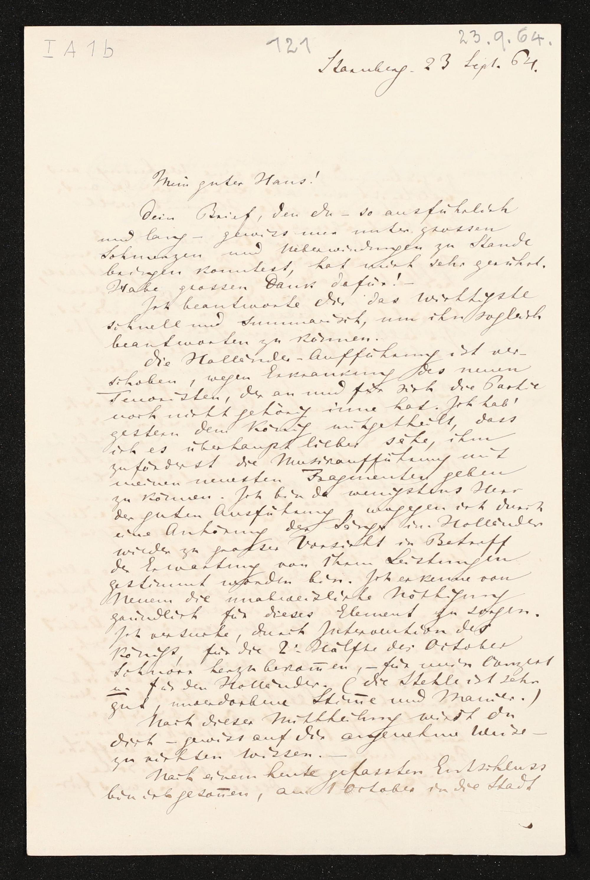 eigenhändiger Brief von Richard Wagner an Hans von Bülow