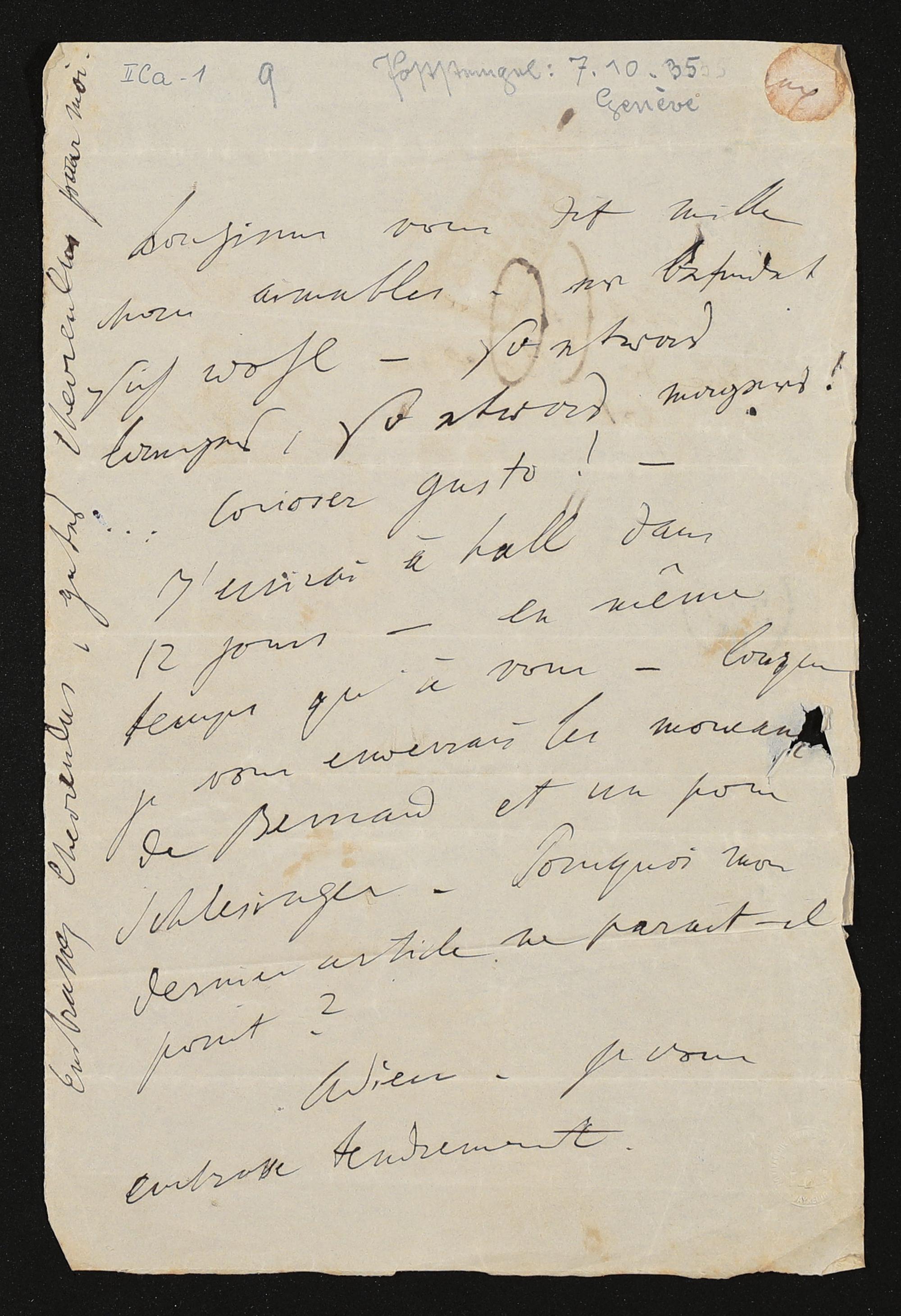 eigenhändiger Brief von Franz Liszt an Maria Anna Liszt