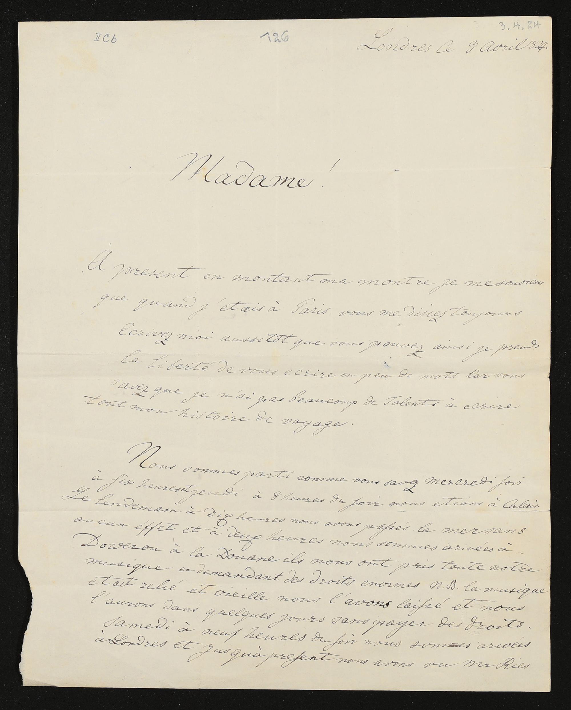 eigenhändiger Brief von Franz Liszt an Maria Anna Liszt