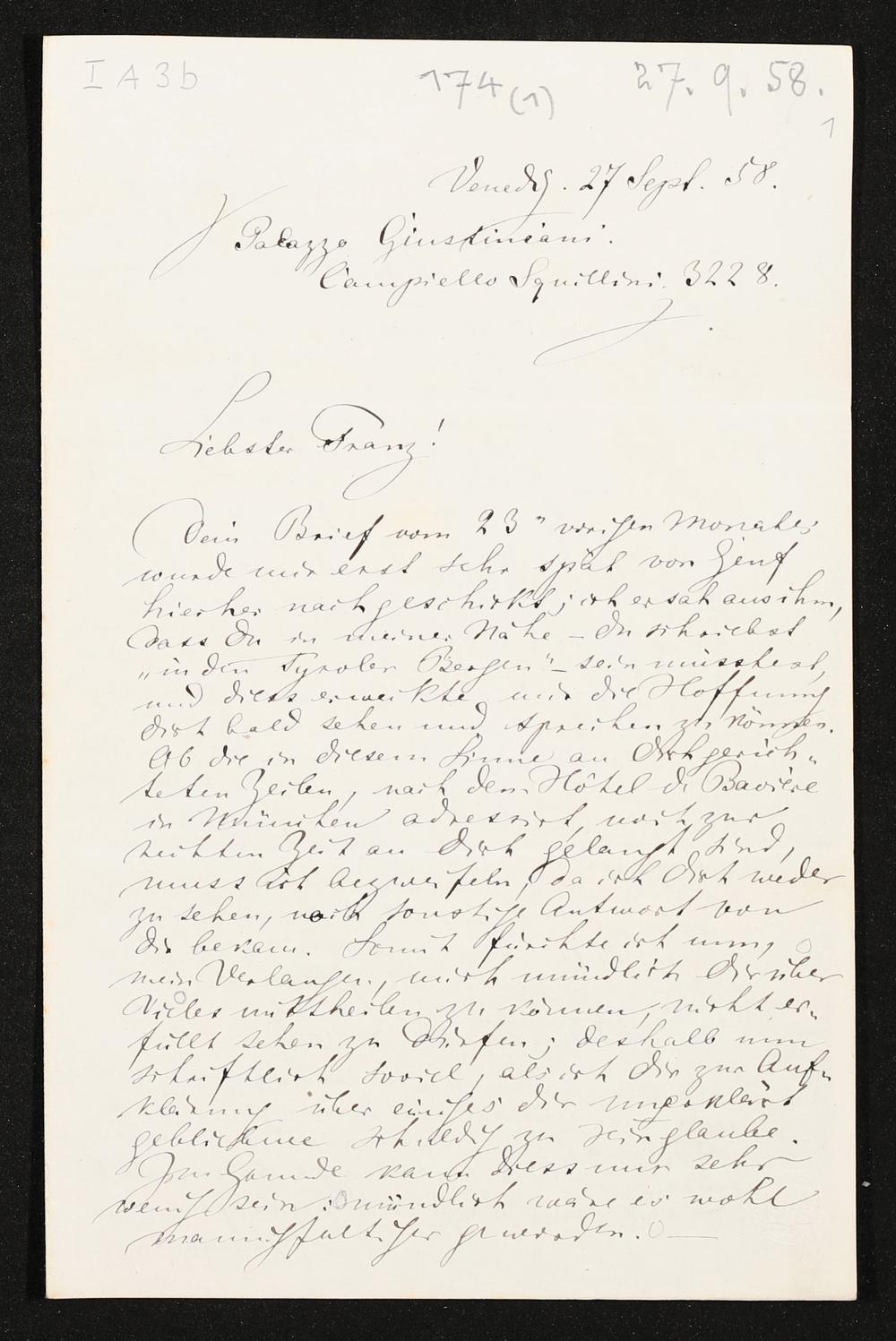 eigenhändiger Brief von Richard Wagner an Franz Liszt