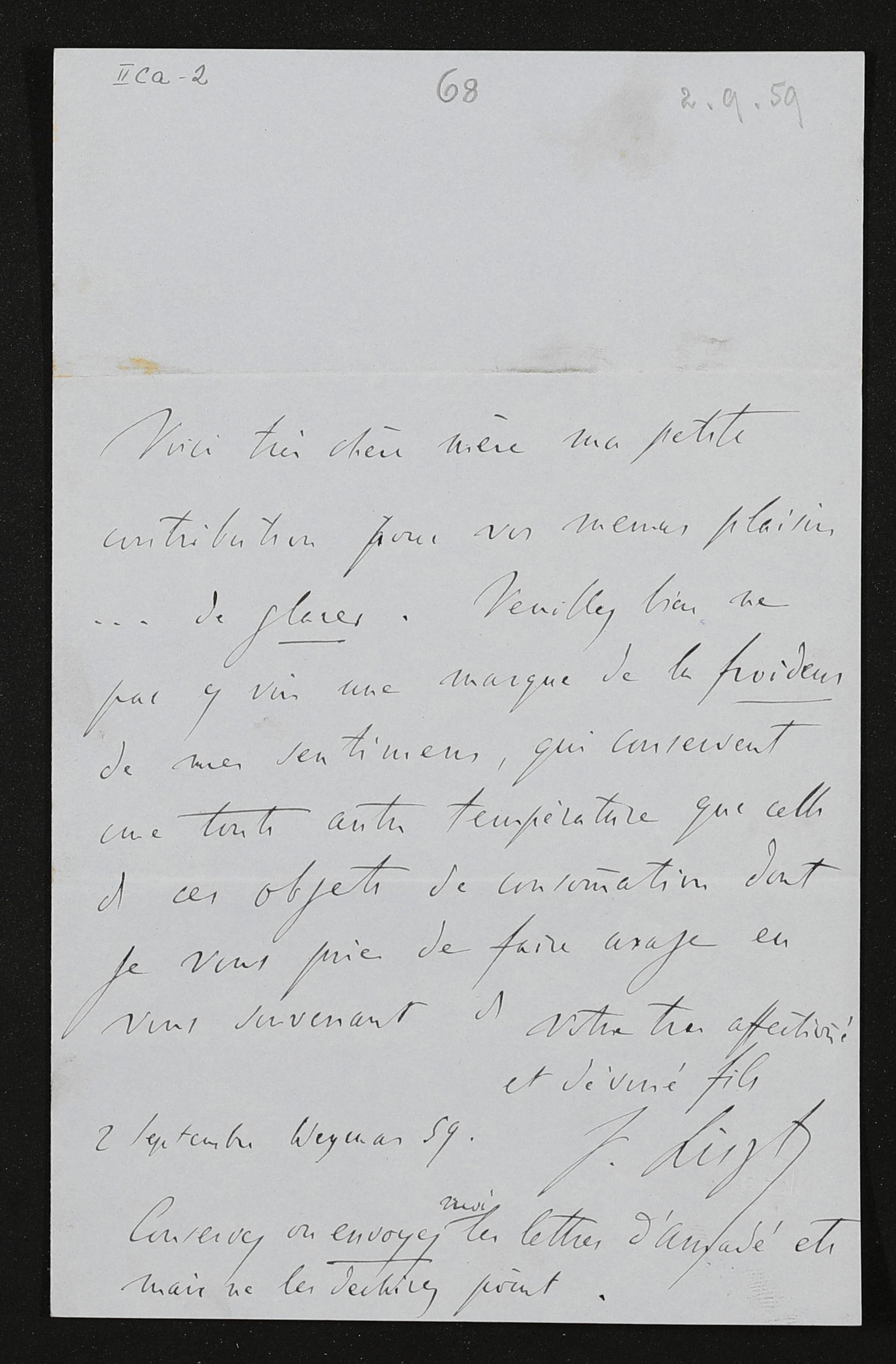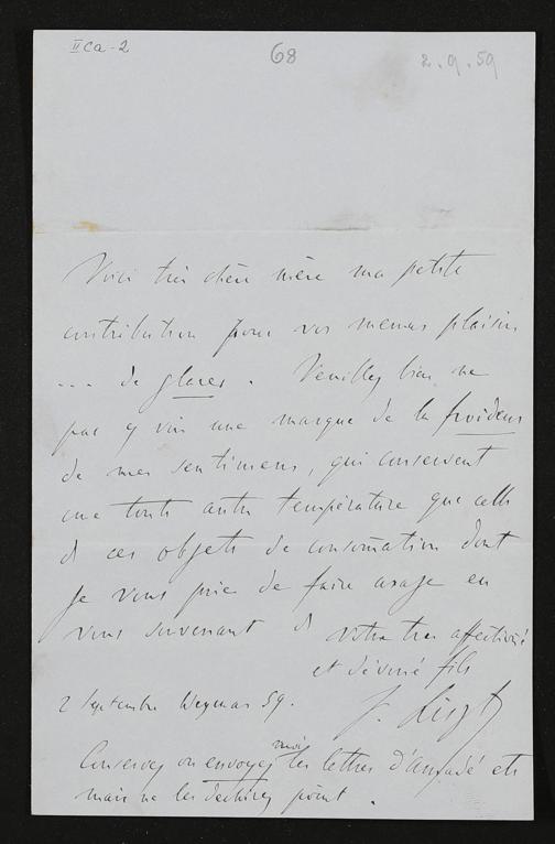 eigenhändiger Brief von Franz Liszt an Maria Anna Liszt