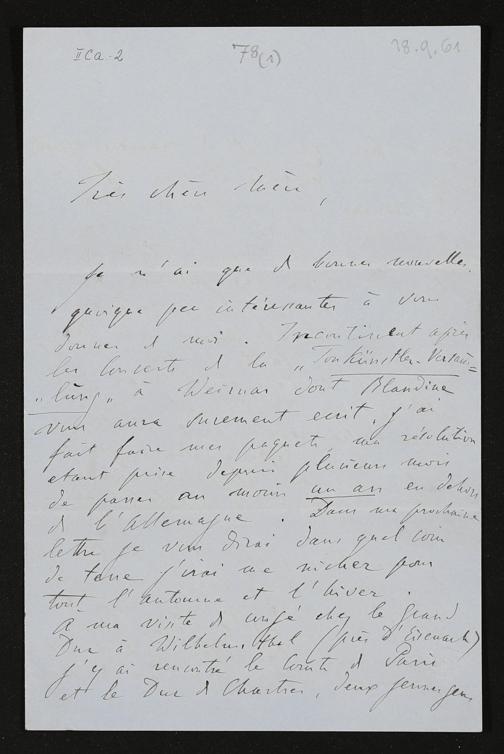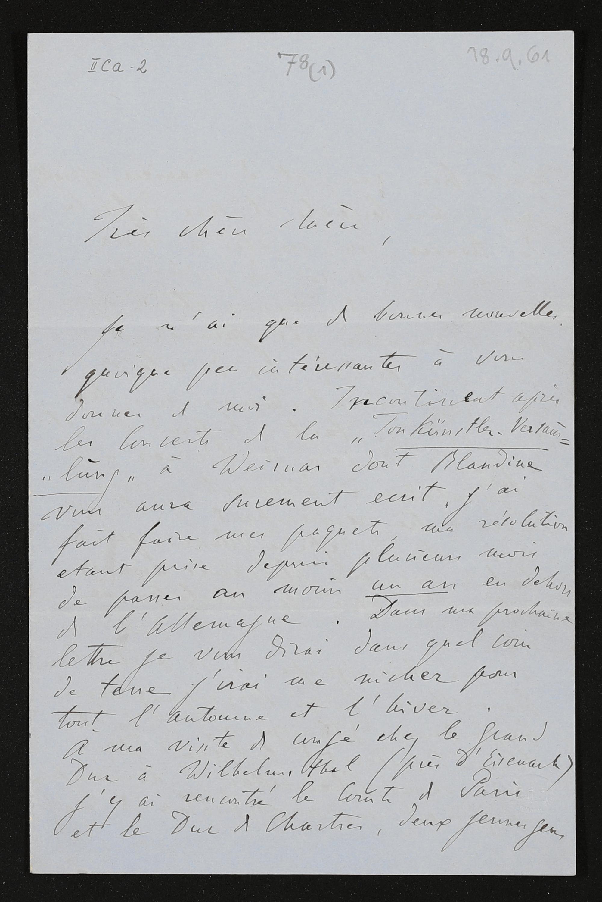 eigenhändiger Brief von Franz Liszt an Maria Anna Liszt