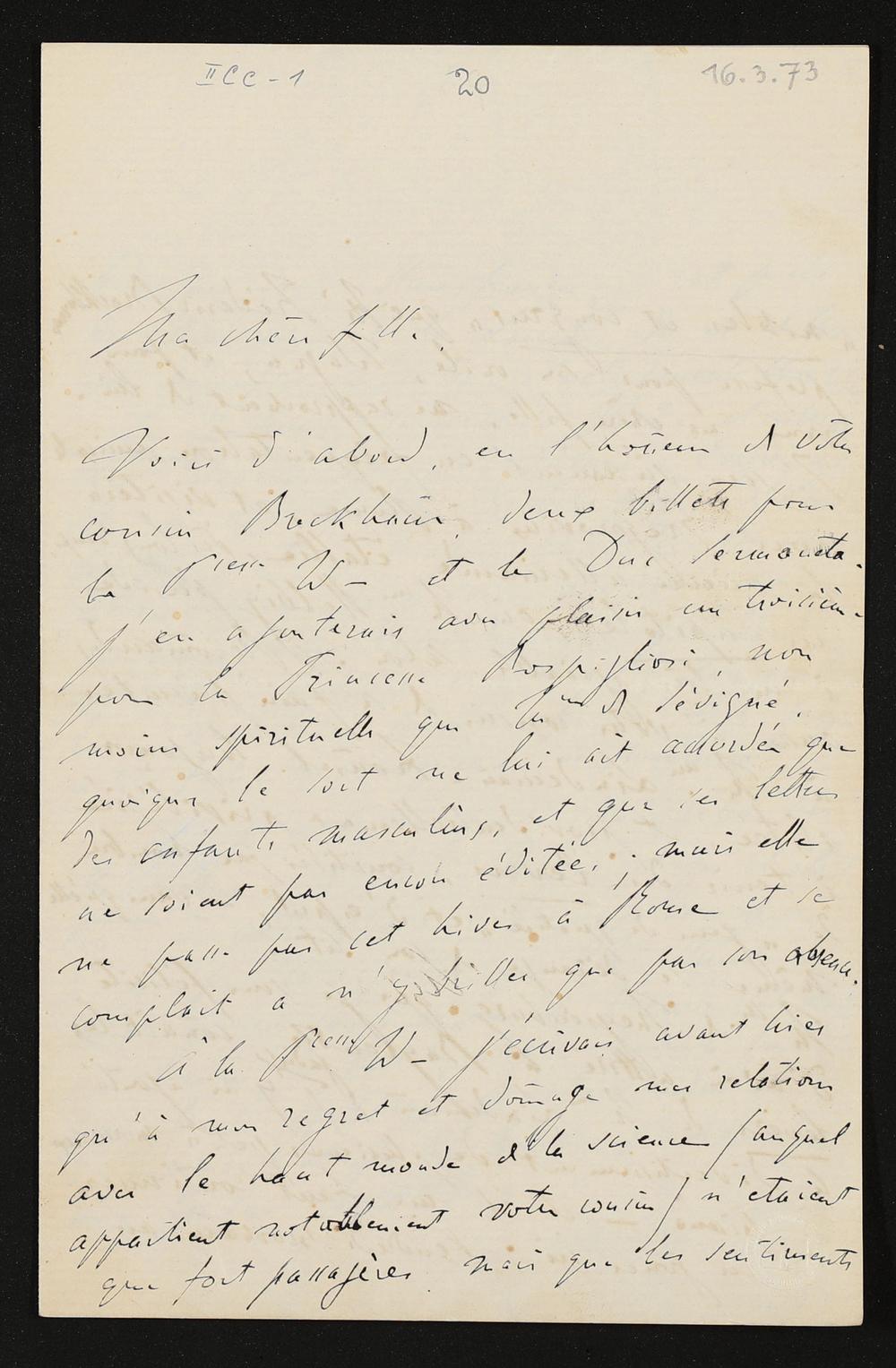 eigenhändiger Brief von Franz Liszt an Cosima Wagner