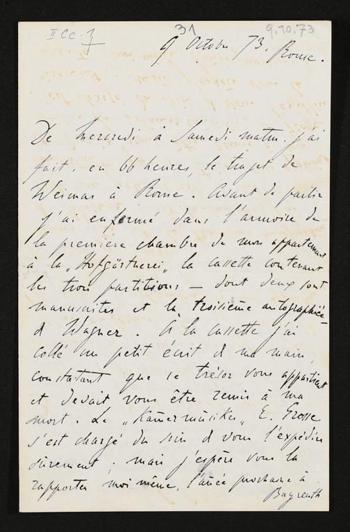 eigenhändiger Brief von Franz Liszt an Cosima Wagner