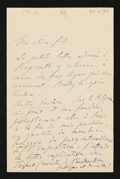 eigenhändiger Brief von Franz Liszt an Cosima Wagner