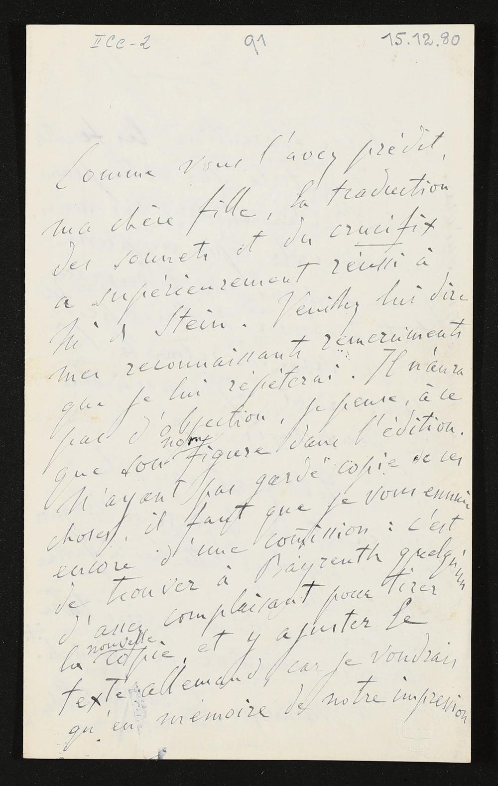 eigenhändiger Brief von Franz Liszt an Cosima Wagner