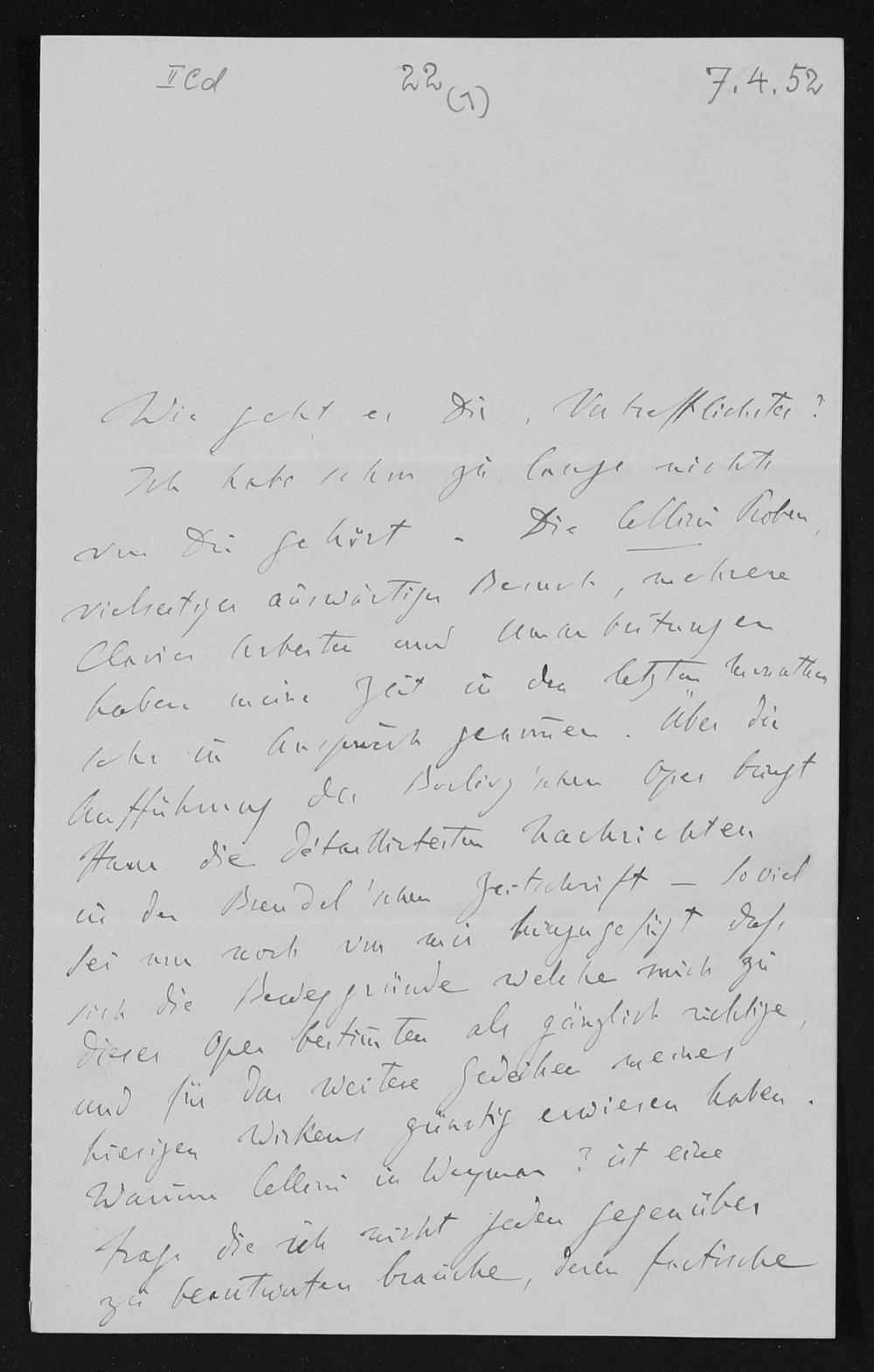 eigenhändiger Brief von Franz Liszt an Richard Wagner