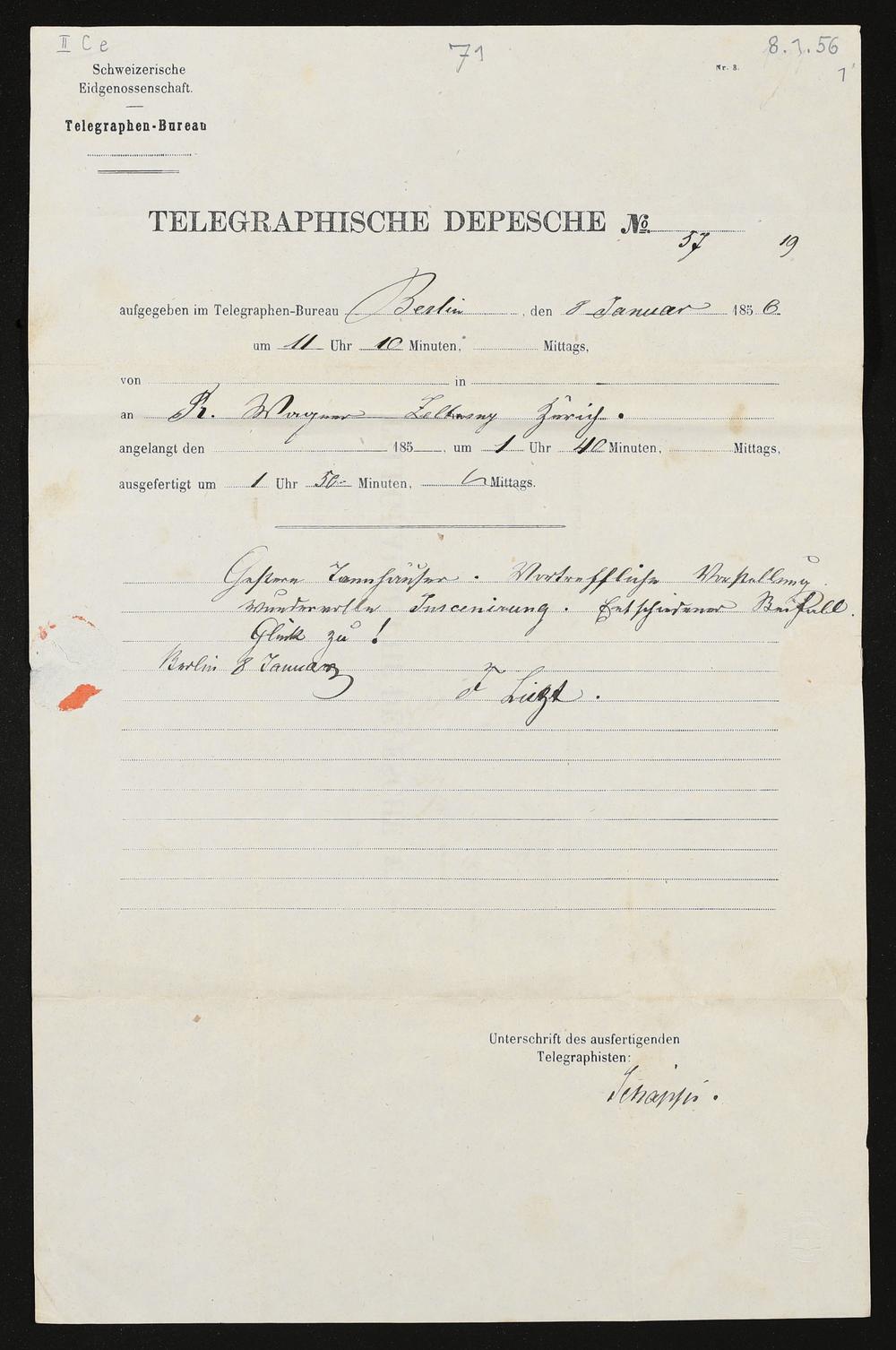 Telegramm von Franz Liszt an Richard Wagner