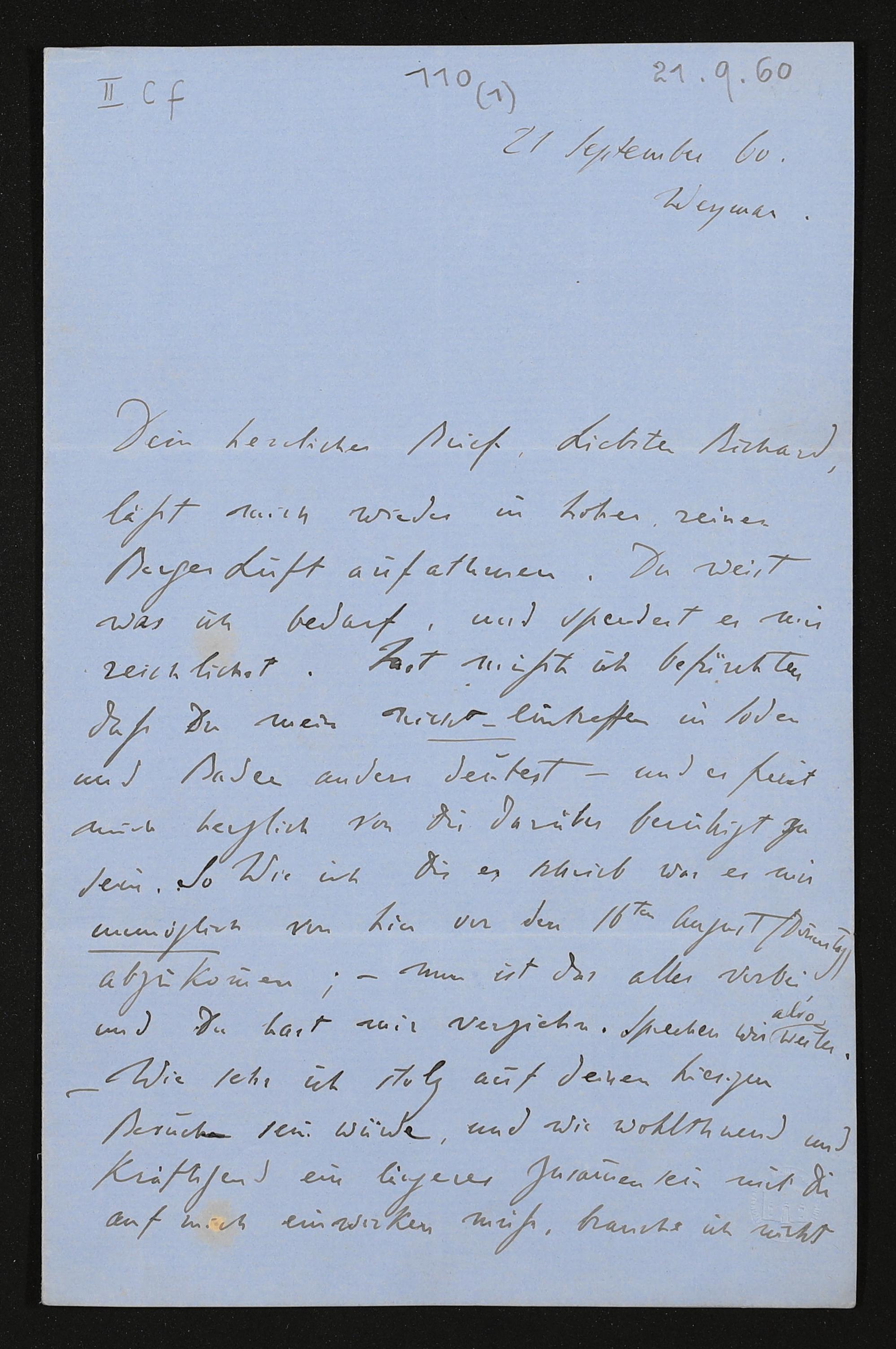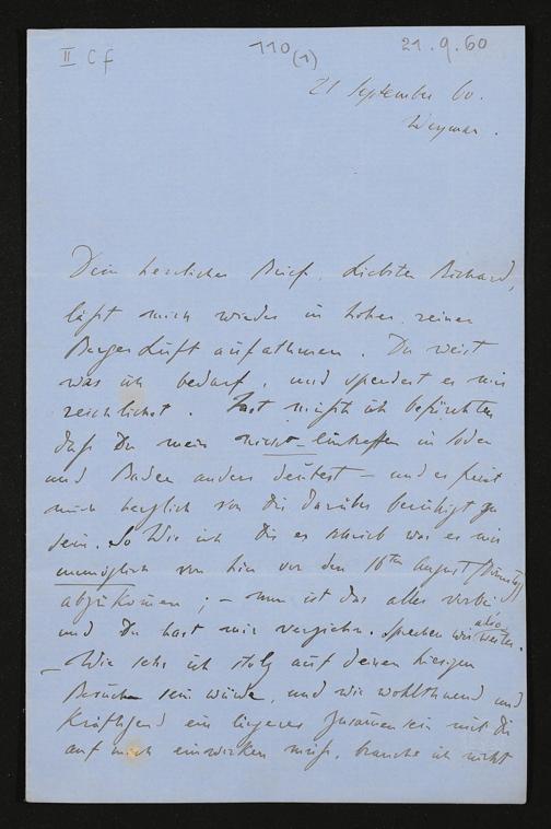 eigenhändiger Brief von Franz Liszt an Richard Wagner