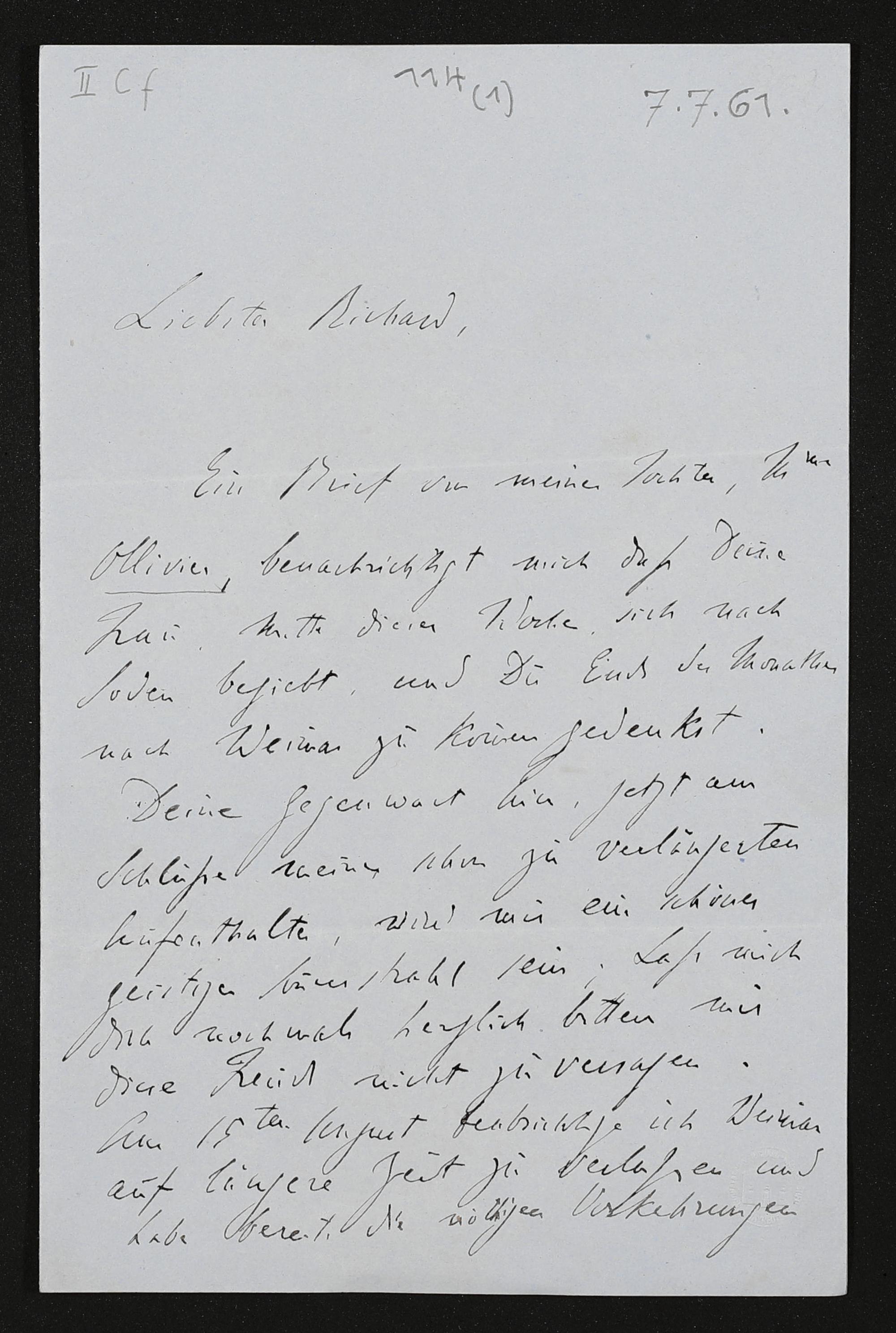 eigenhändiger Brief von Franz Liszt an Richard Wagner, beiliegend: Tages-Ordnung der Zweiten Tonkünstler-Versammlung