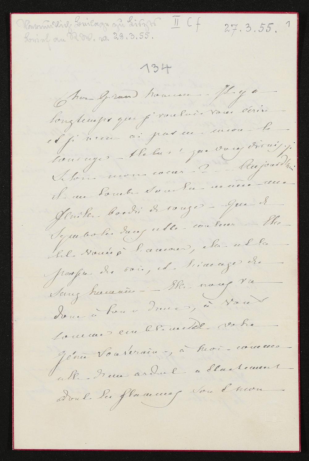 eigenhändiger Brief von Carolyne von Sayn-Wittgenstein an Richard Wagner [Beilage zu Brief von Franz Liszt an Richard Wagner]