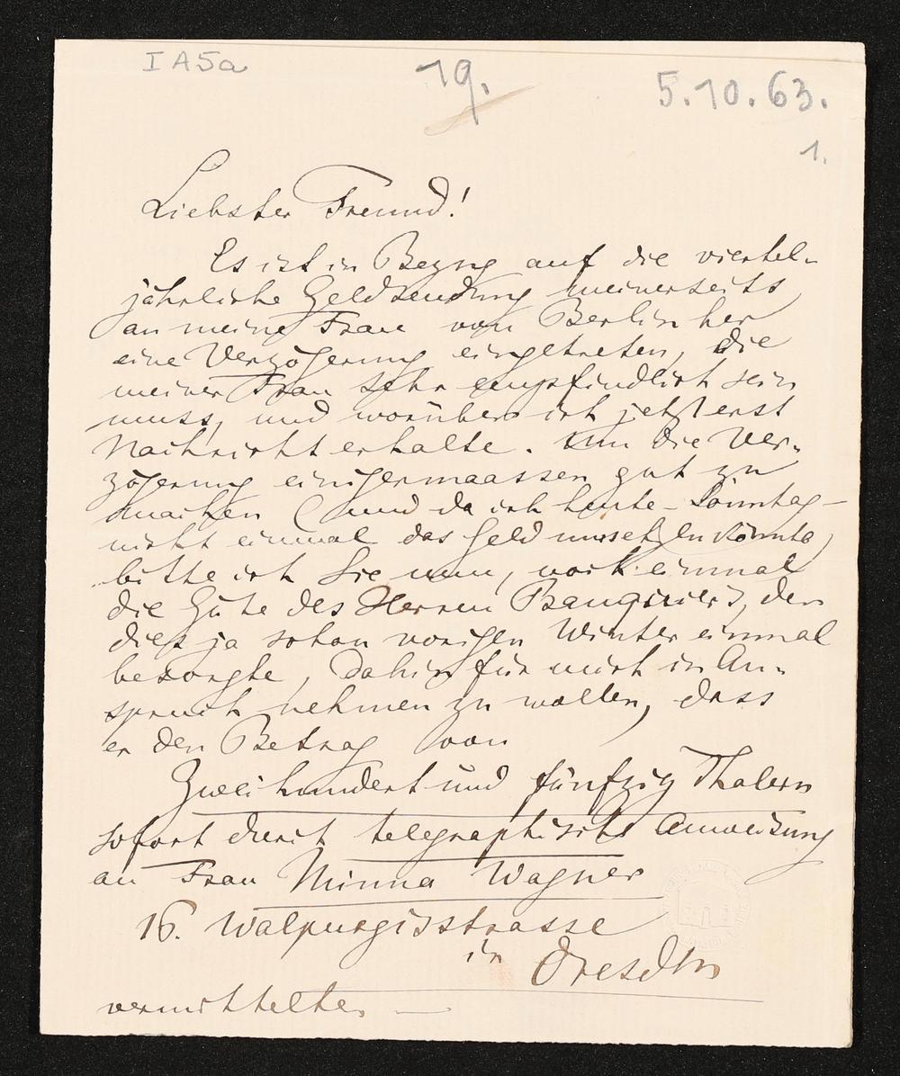 eigenhändiger Brief von Richard Wagner an Josef Standhartner